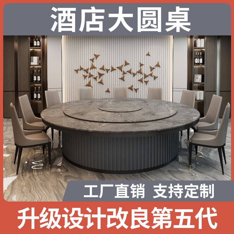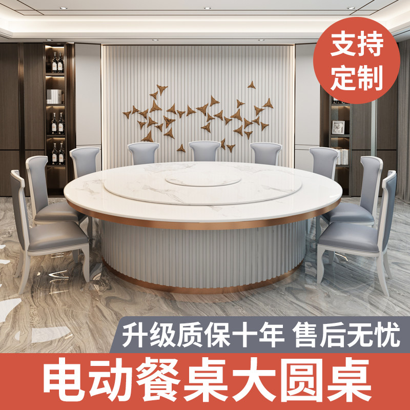 Hotel Electric Dining Table Large Round Table Rock Board New Chinese Style Automatic Swivel Solid Wood Table Hotpot Table Table And Chairs Combined 20 People