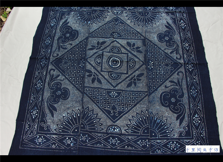 Thousands of miles of idle clouds hand-made characteristic handmade linen Guizhou indigo batik tie-dye flowers and birds animals old quilt C178