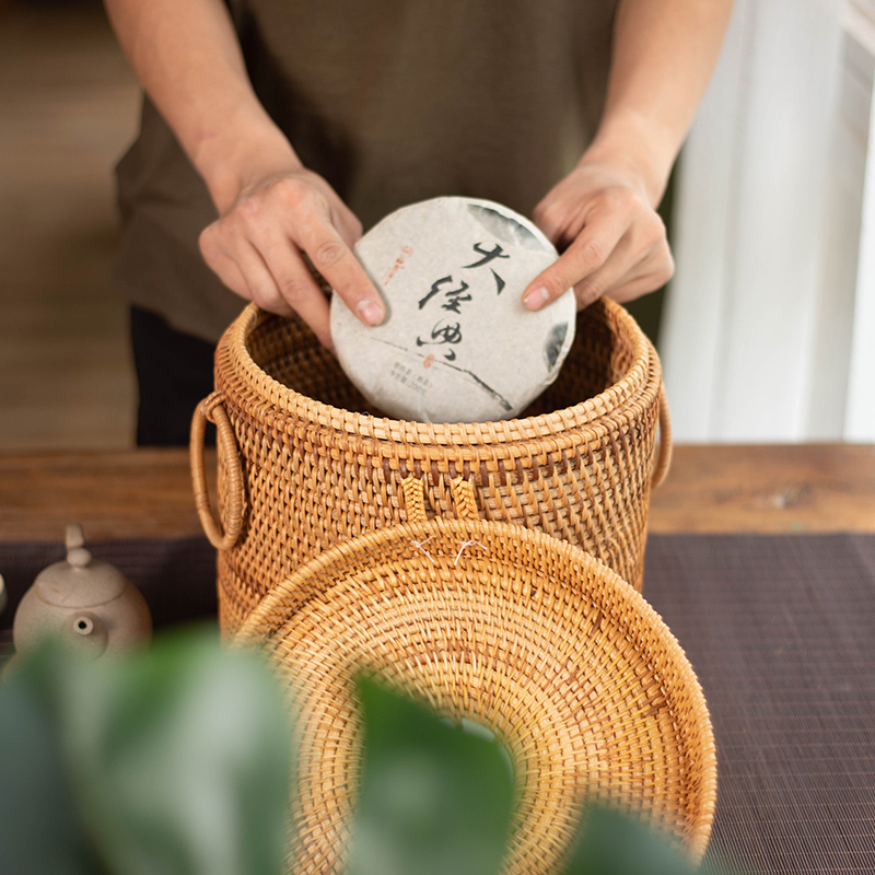 Vietnamese rattan Pu'er tea cake storage box seven cake tea box Tuo tea box loose tea Pu'er tea cake box storage tea box