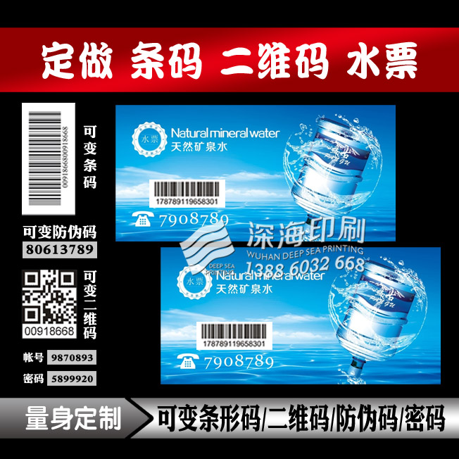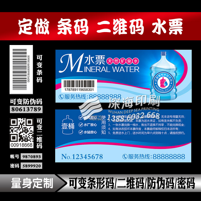 Anti-counterfeiting water ticket printing variable barcode water ticket variable two-dimensional code cash coupon water delivery ticket sample printing customization