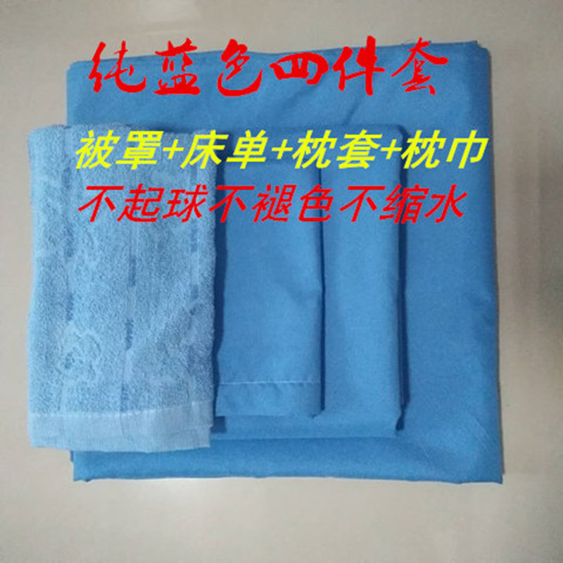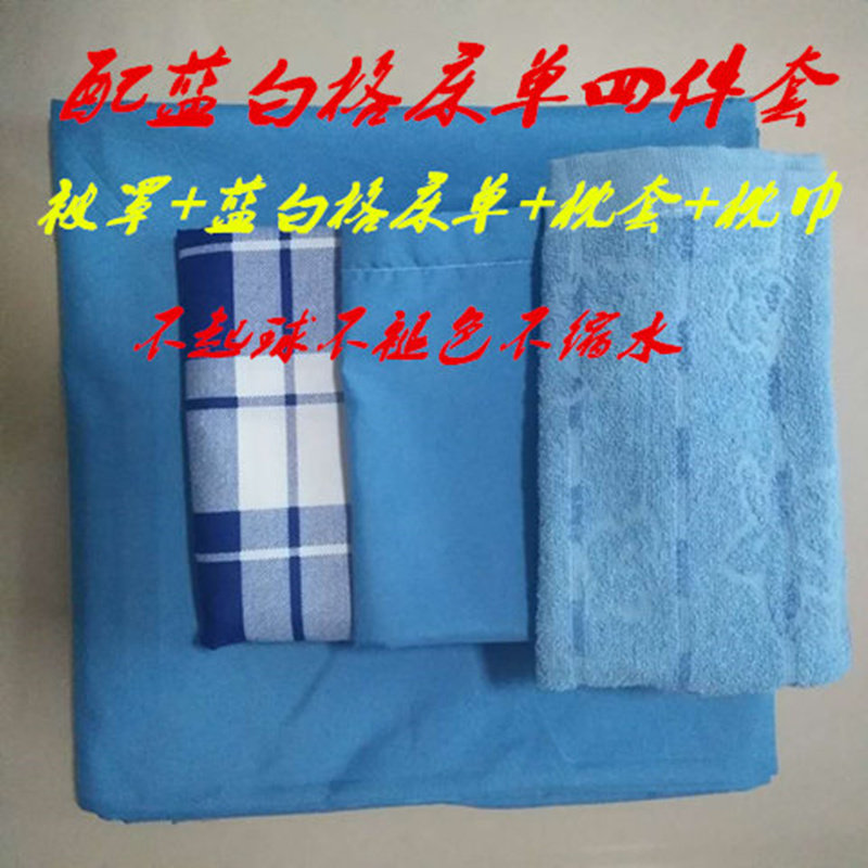Student dormitories Single beds Thickened Blue White Plaid three sets of four sets to make blue and white plaid multiple sets