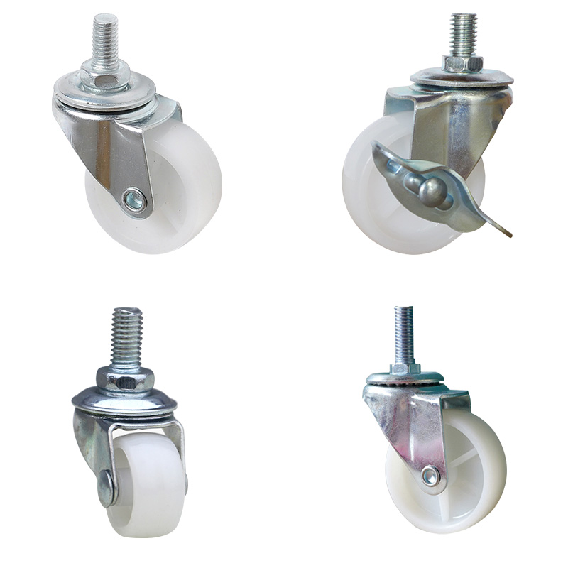 1 5 inch wire rod brake wheel M8 m10 screw head trundle wheel furniture wheel PP wheel nylon wheel