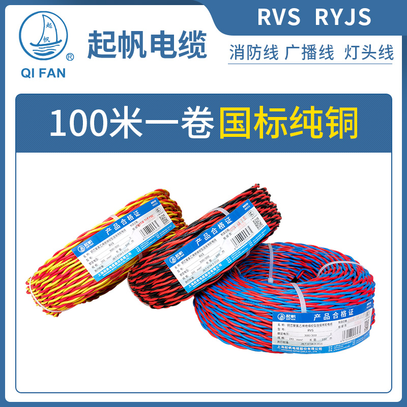 Sail wire RVS2x0 75 1 0 1 5 2 5 square copper core twisted pair lamp head line flower line broadcast line