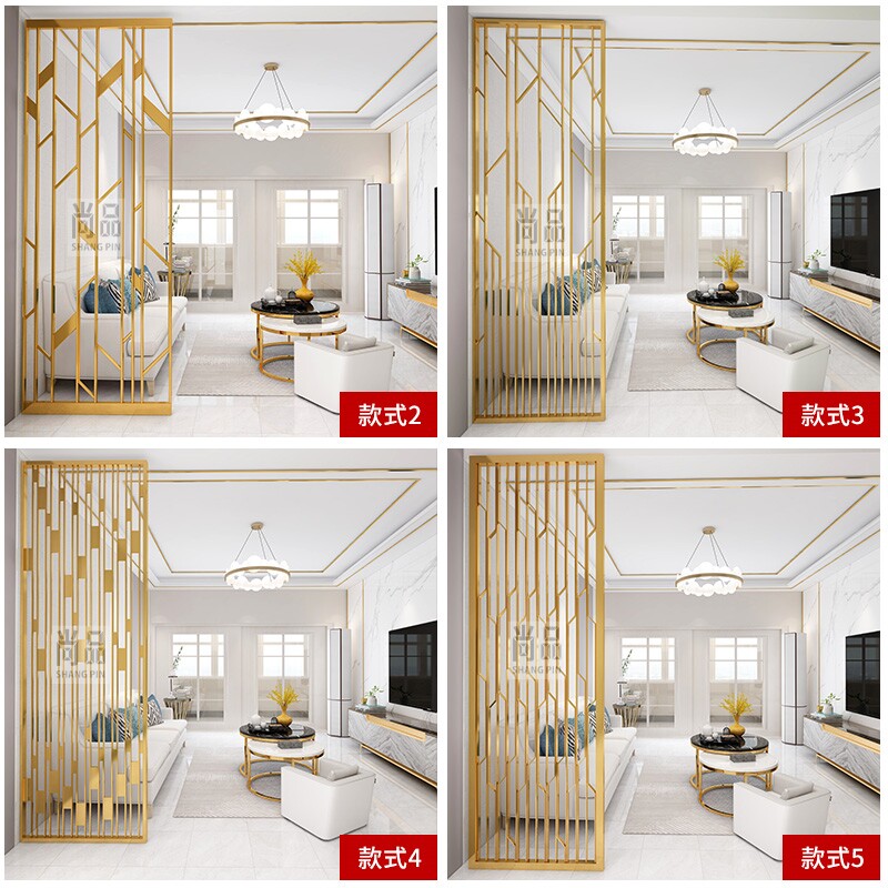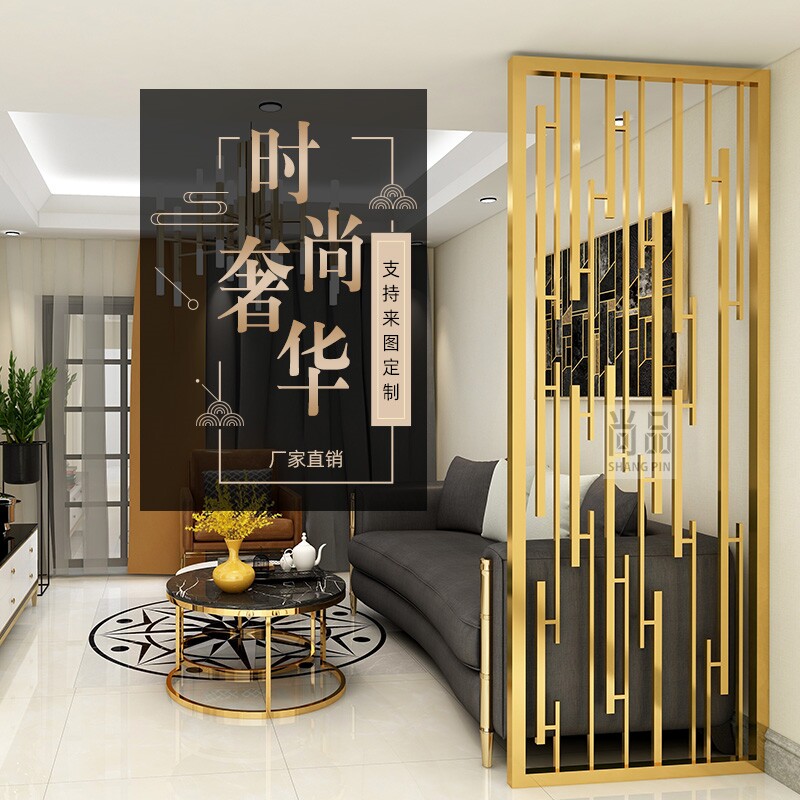 Stainless steel screen partition modern simple light luxury Chinese style living room hotel rose gold cutout metal entry custom