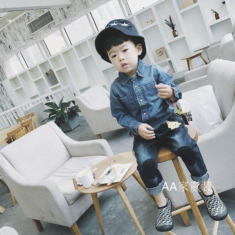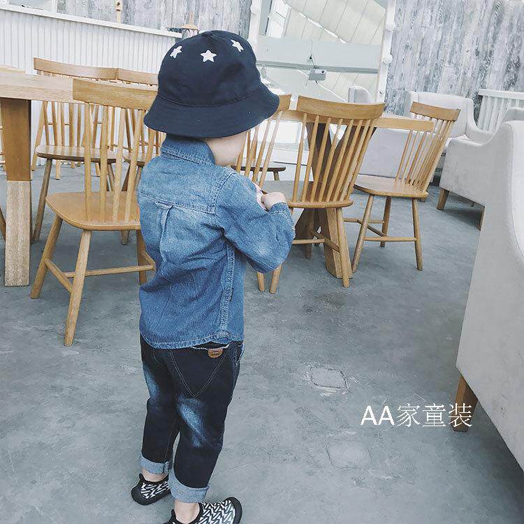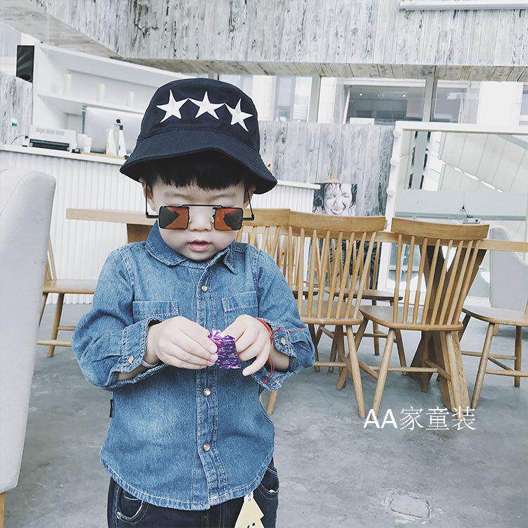 Boys and girls denim shirt Korean version autumn Korean version boys and girls baby soft glutinous denim long-sleeved shirt ins tide