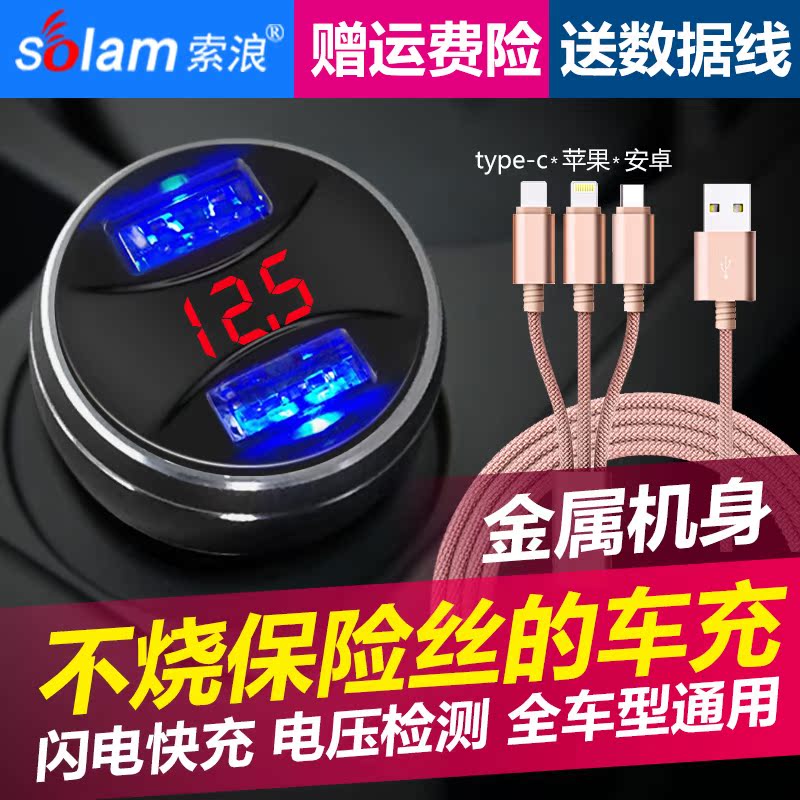 Suolang car charger smart car charger one drag two pairs usb 12V24v car universal mobile phone charger