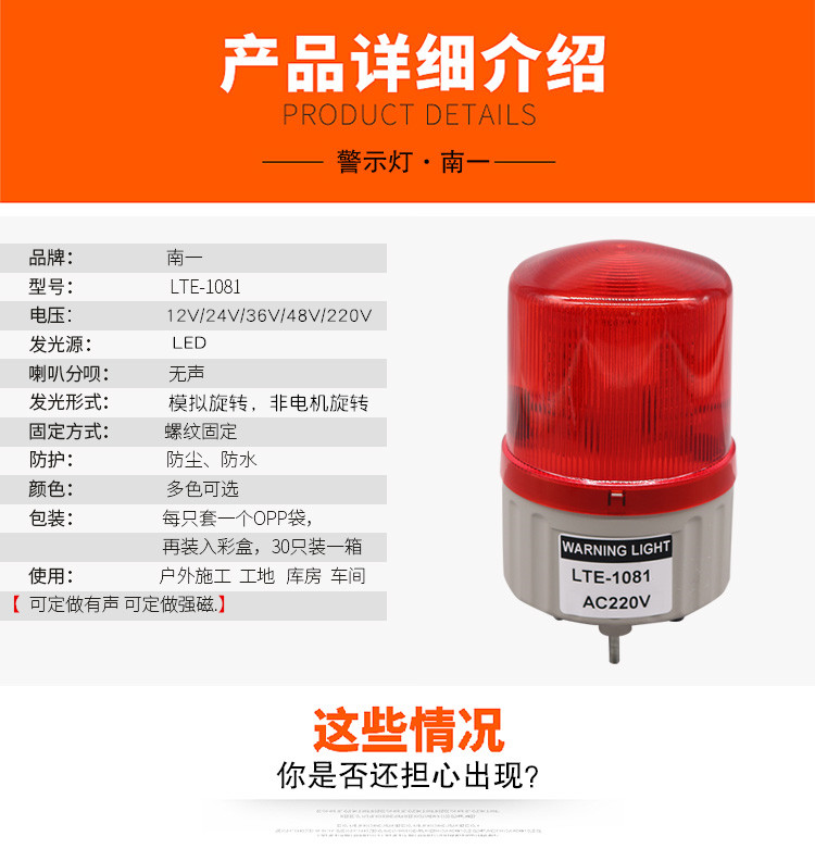 Southern Industrial Warning Light Rotating Warning Light LED Alarm Light LTE-1081 Silent Rotating Alarm Light