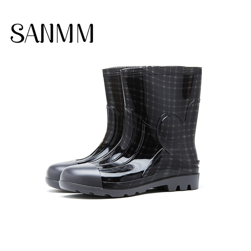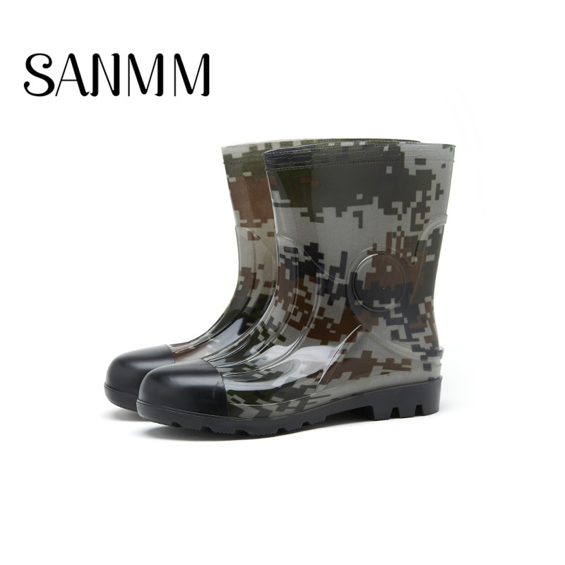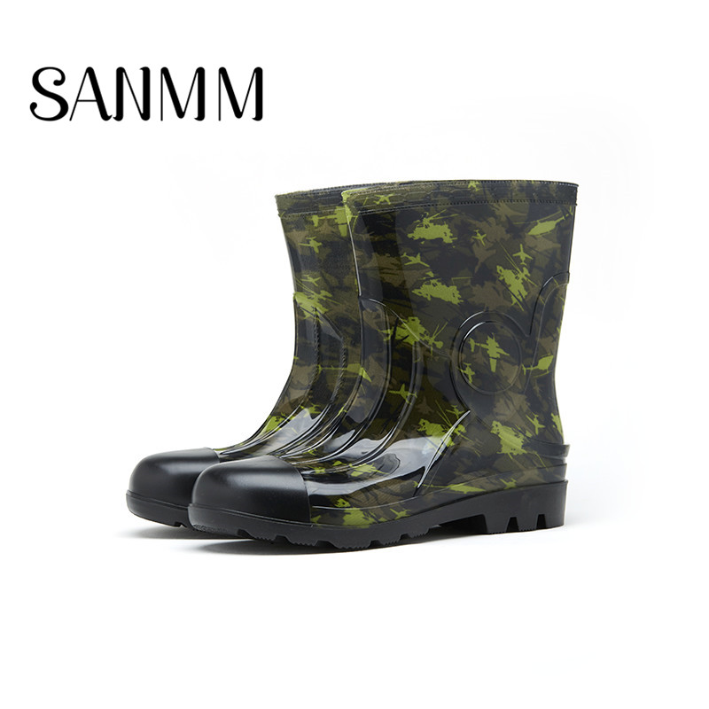 Sanmingmei men's rain boots camouflage mid-tube winter rain boots non-slip water shoes plus velvet wear-resistant fashion rubber shoes 1625