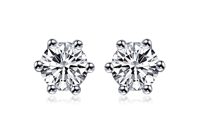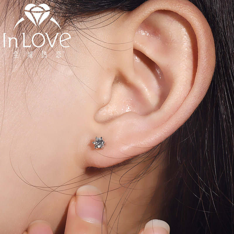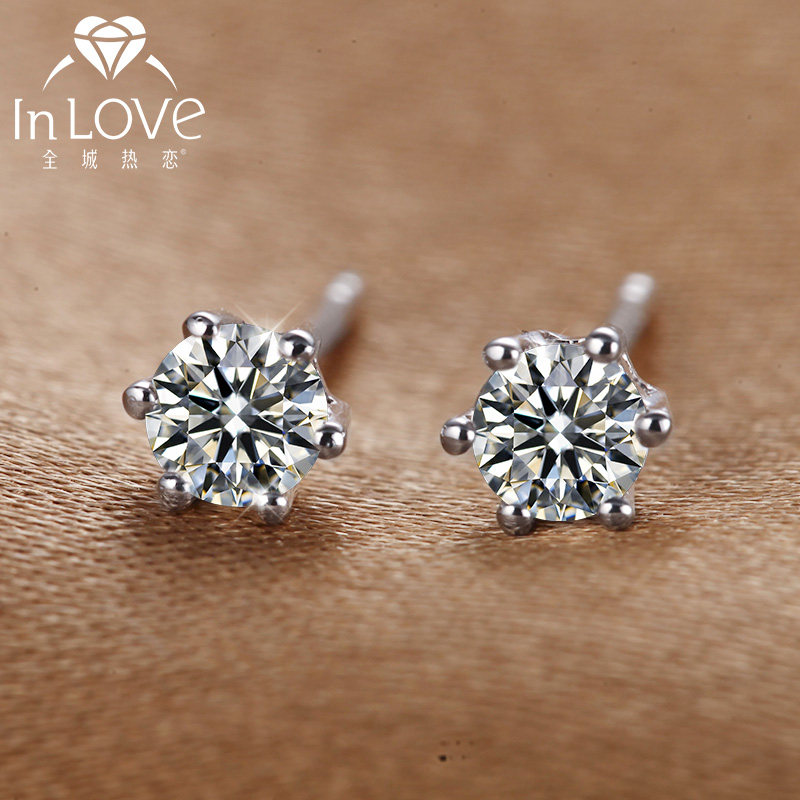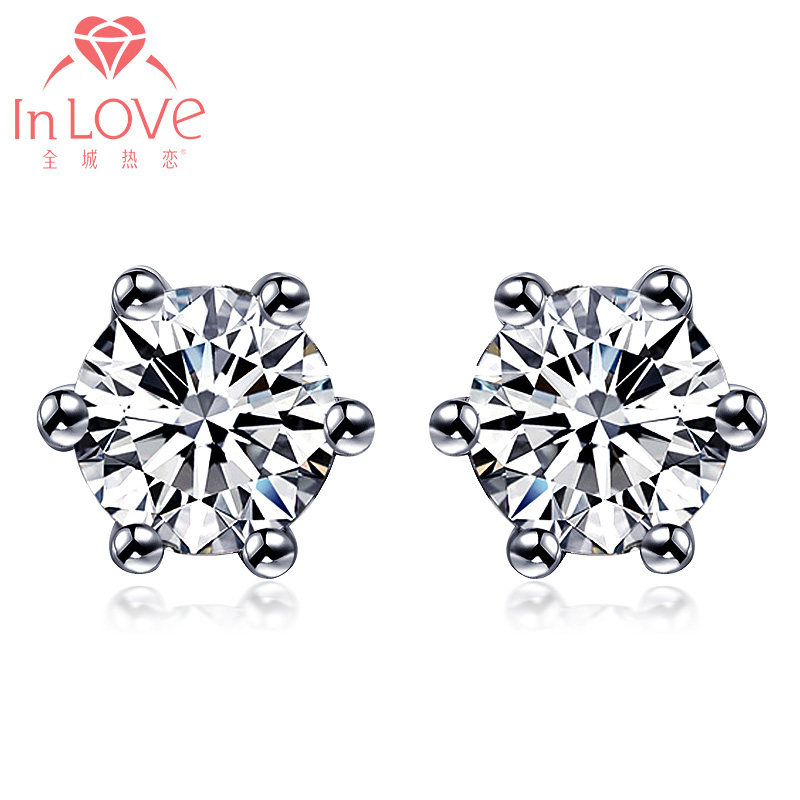 The city loves white 18K gold diamond earrings six claw diamond earrings women's simple diamond earrings drop earrings