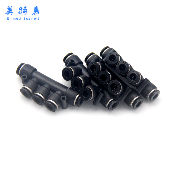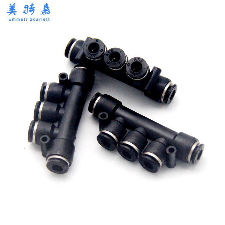 Pneumatic connector Trachea quick plug quick black connector plastic five-way PK04 06 08 10 12