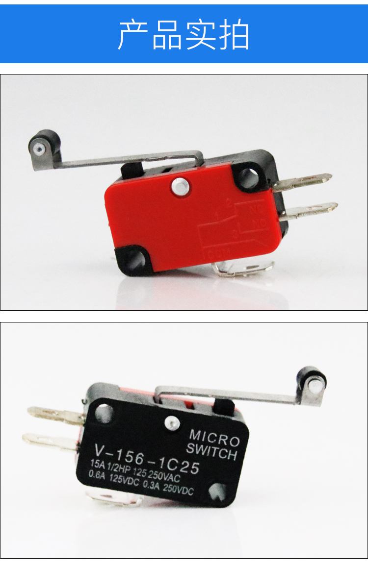 Small stroke switch V-156-1C25 microswitch micro-press limit switch reset long shank roller