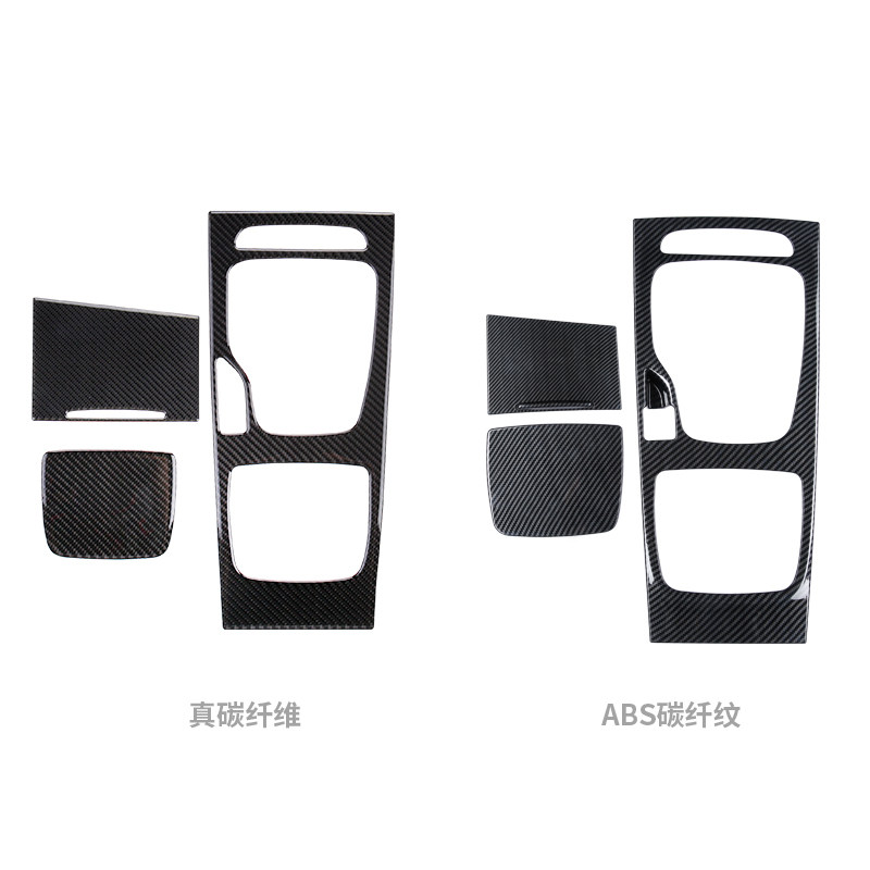 Central control panel (true carbon fiber drop glue) Three sets of middle control panel (ABS carbon slim) three sets of gear panel (ABS carbon slim) one piece of gear shift handle sticker (ABS carbon fiber weave)