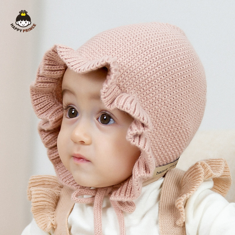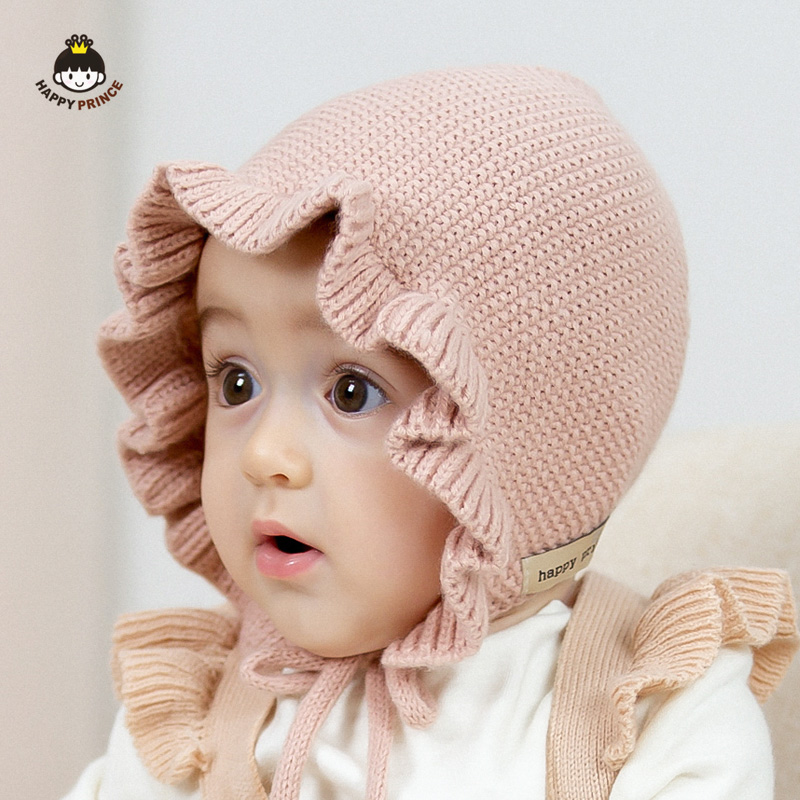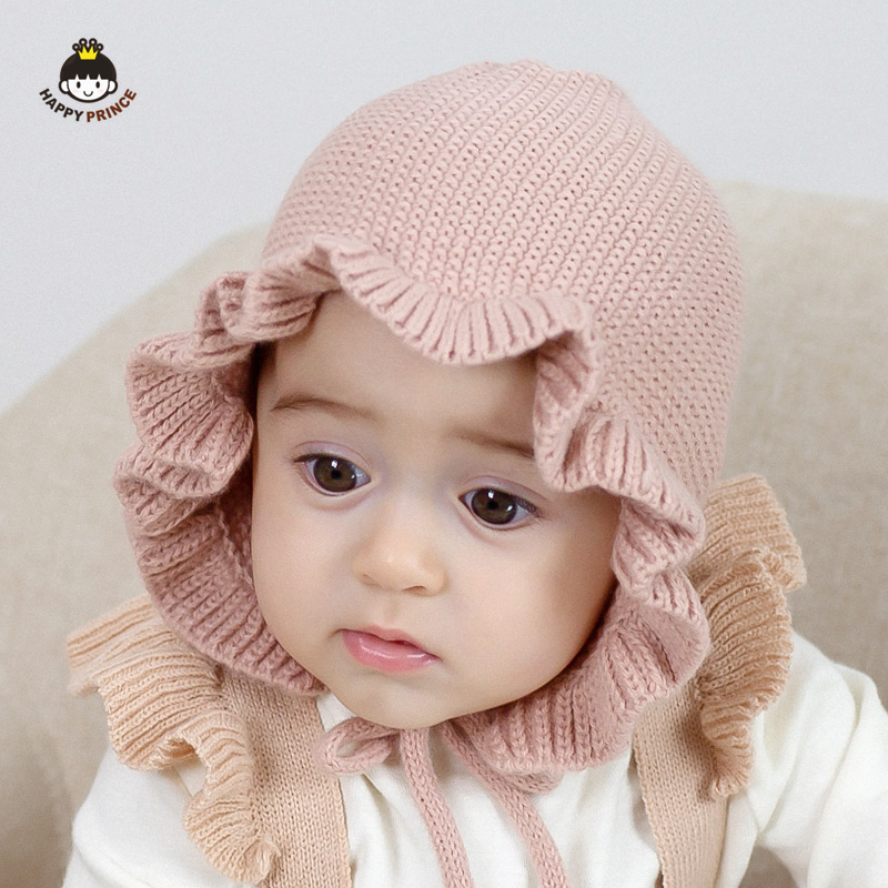 Newborn infant male and female child lotus leaf side lovely thickened hand plush knitted hat baby hat autumn winter Korean version-Taobao