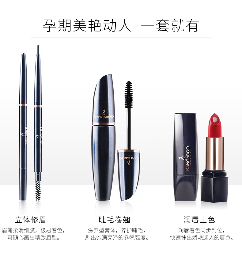 Kangaroo Mom Pregnancy Makeup Set 3 Pieces Lipstick Eyebrow Pencil Mascara Set Pregnancy Cosmetics