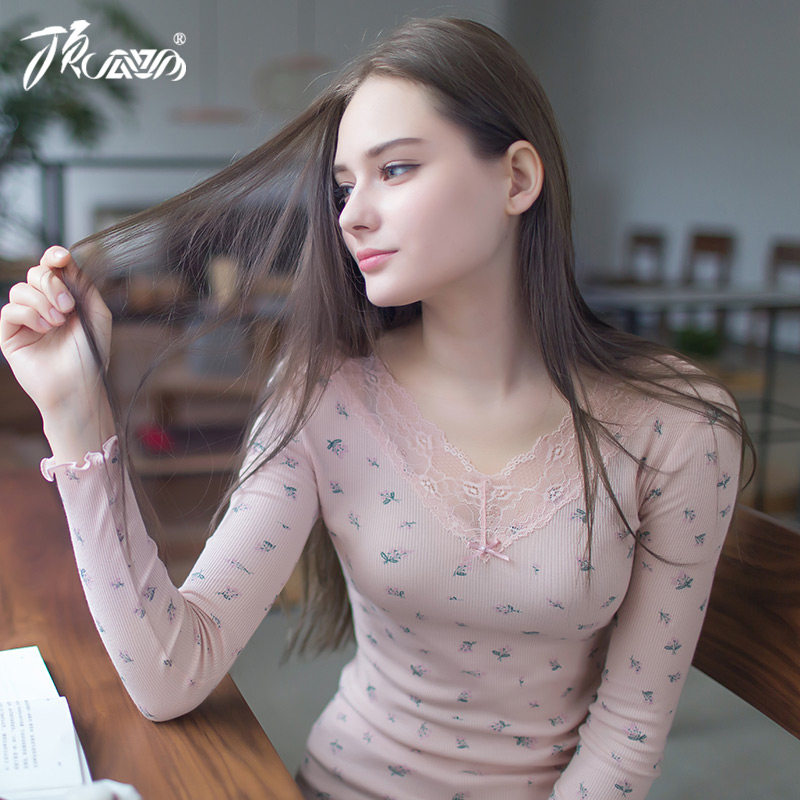 Piperpetite Autumn Trousers Pure Cotton Set Womens Heating Cotton Wools V-collar Sweater