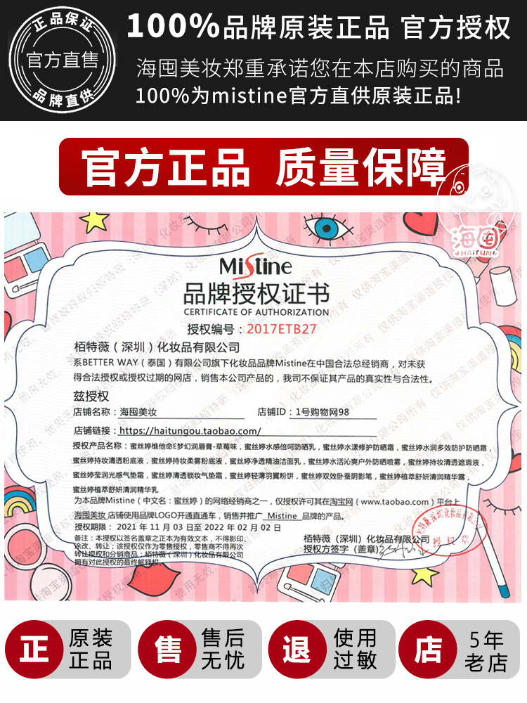 Sea stock Thai Mistine small strawberry discoloration moisturizes and moisturizes and moisturizes persistent moisturizing lipstick 1 7g