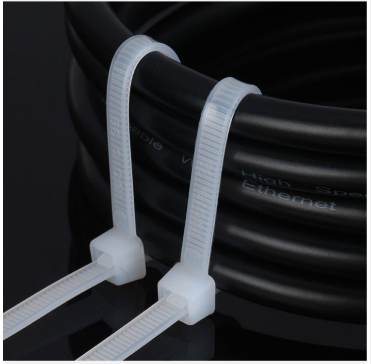 Self-locked nylon tie 3X 100 plastic tie strap with white bundled band with small black strap button