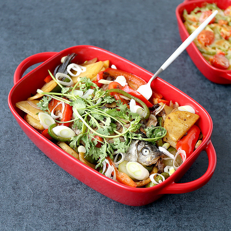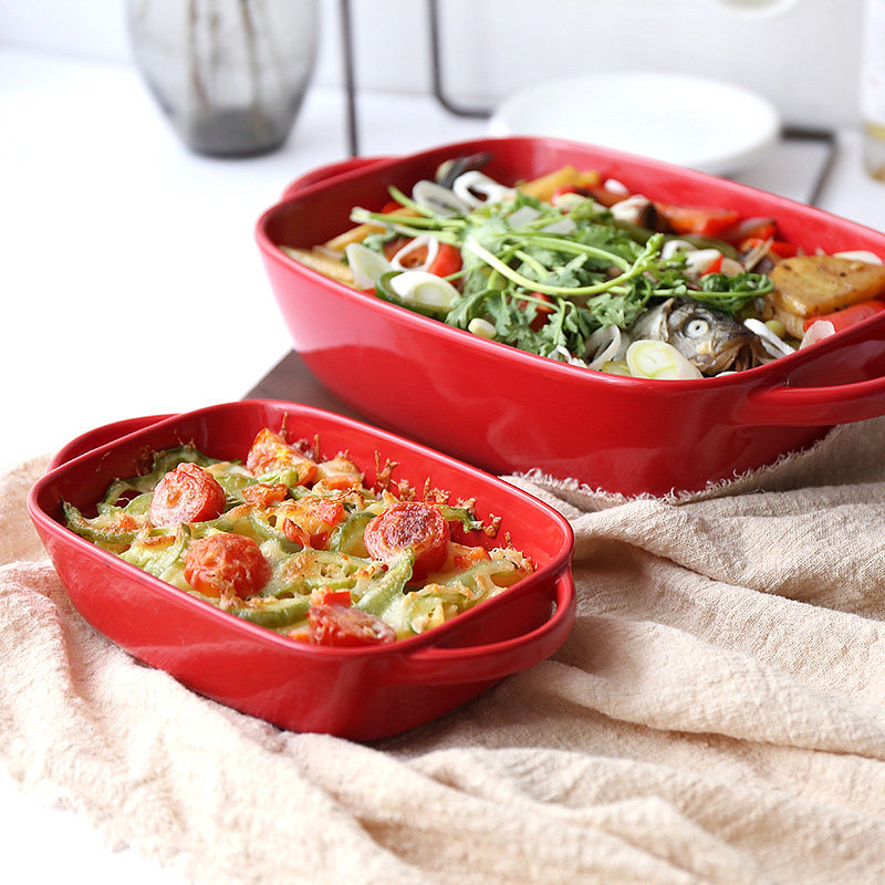 Red double ear baking tray-small number red double ear baking tray-large number small number two-ear baking pan-yellow trumpet double-ear baking pan-blue trumpet double-ear baking pan-green