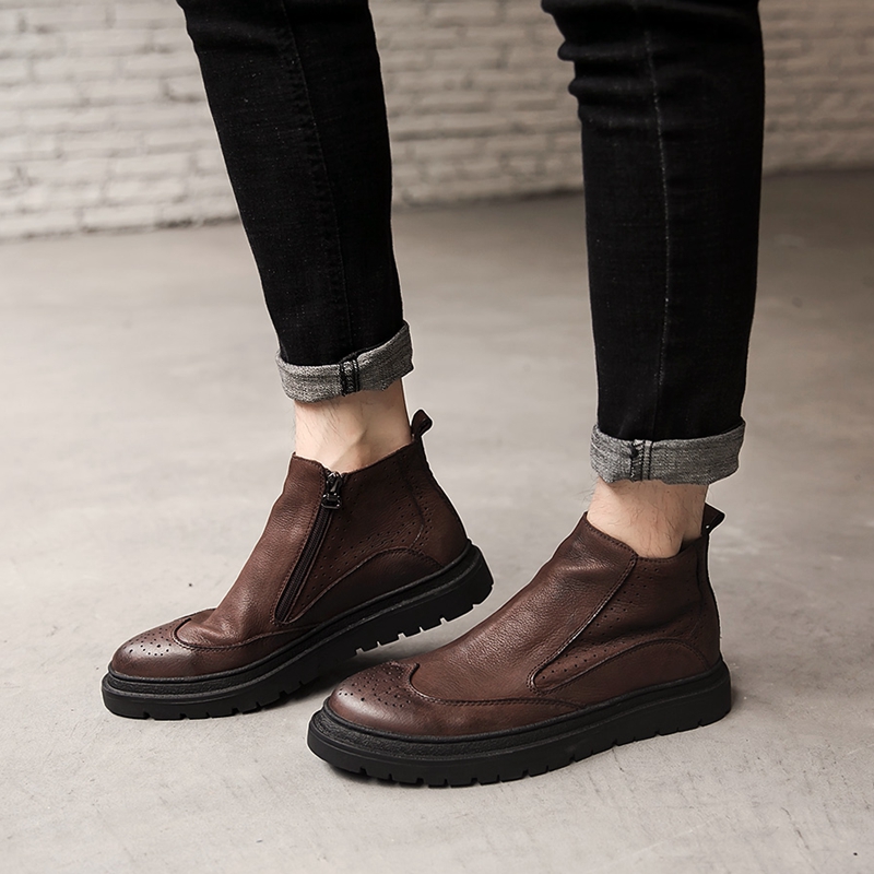 European and American retro leather Martins autumn and winter men's thick-soled casual short boots England Joker high-barrel men's shoes tide