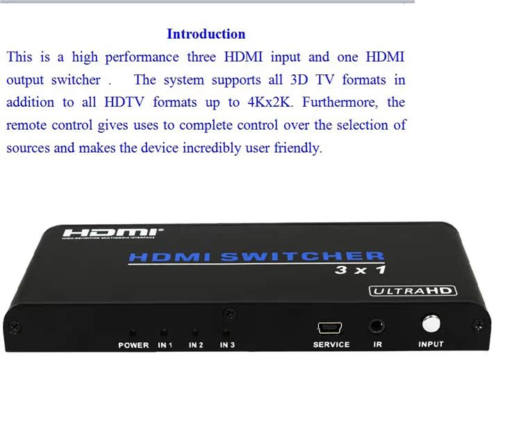 hdmi switcher 3 in 1 out 4k ultra high definition switching distributor with remote control five in one out 2 0 version