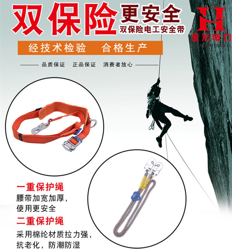 Thickened Double Insurance Aerial Work Electrician Safety Belt Girdle With Climbing Pole Safety Belt Rope Hook Power Tool-Taobao