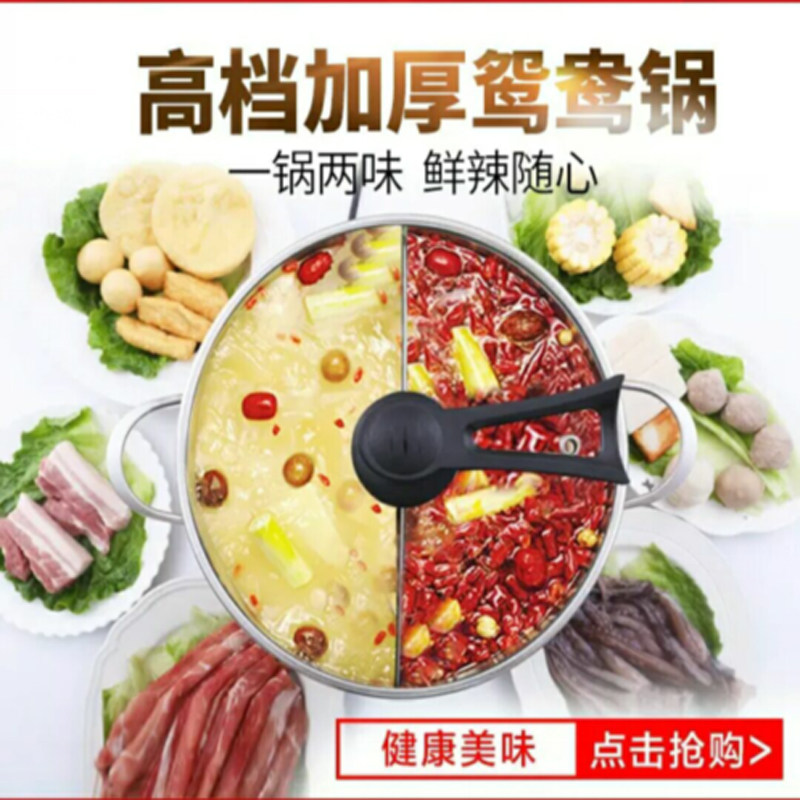 304 stainless steel 5L thickened cauldron Mandarin duck hot pot silver + standing pot lid Mandarin duck hot pot red + standing pot lid non-Mandarin duck red hot pot + standing pot lid