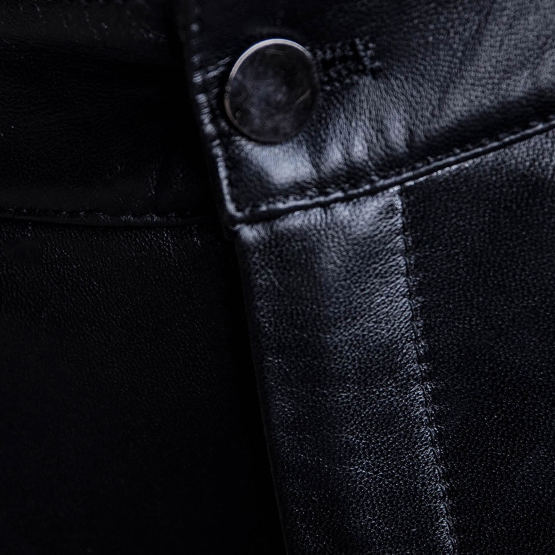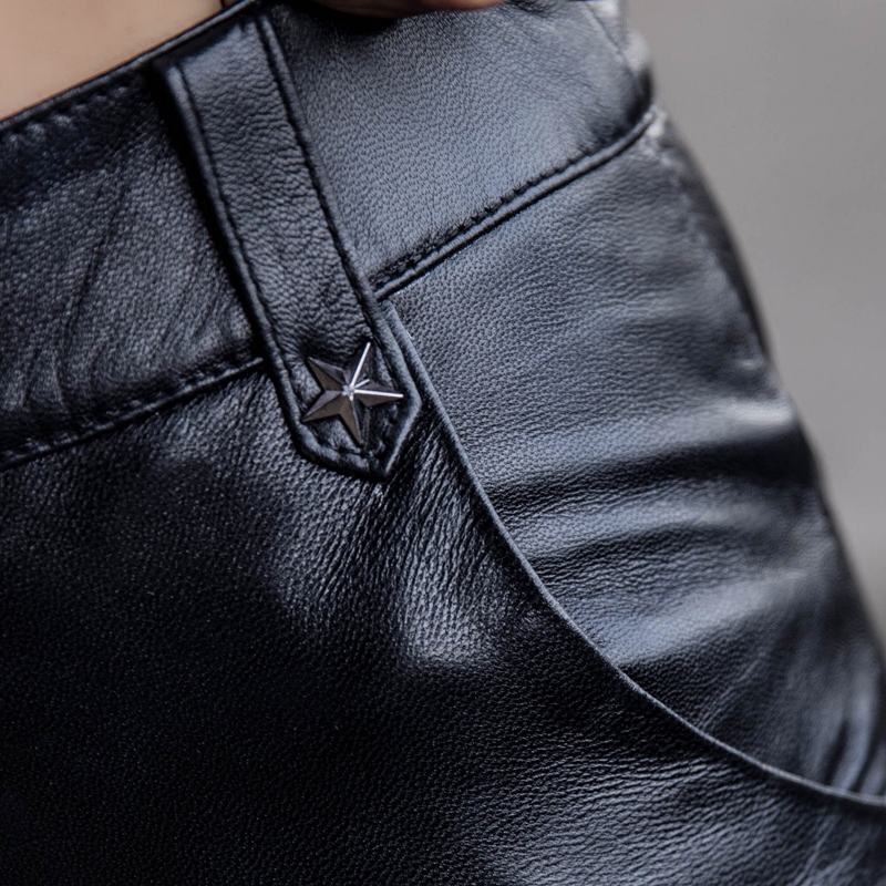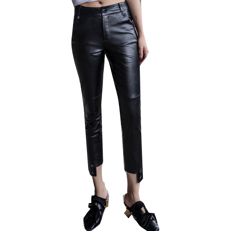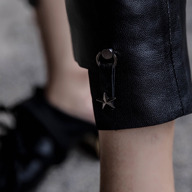 2021 autumn and winter new leather leather pants women show thin feet asymmetrical star nine-point pants sheepskin pencil pants tide