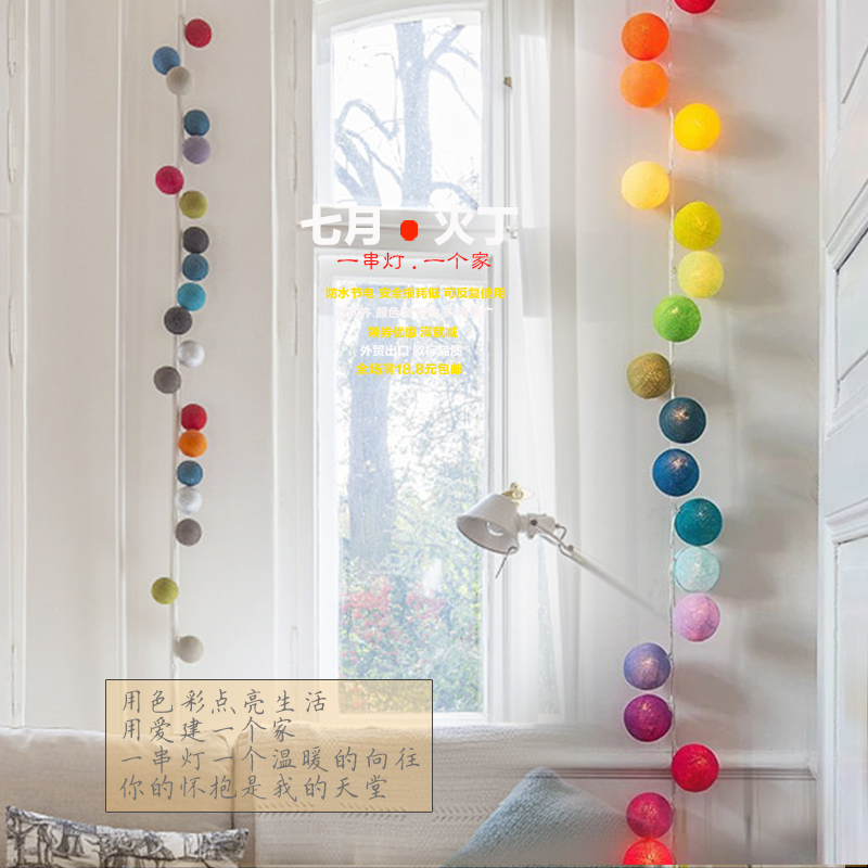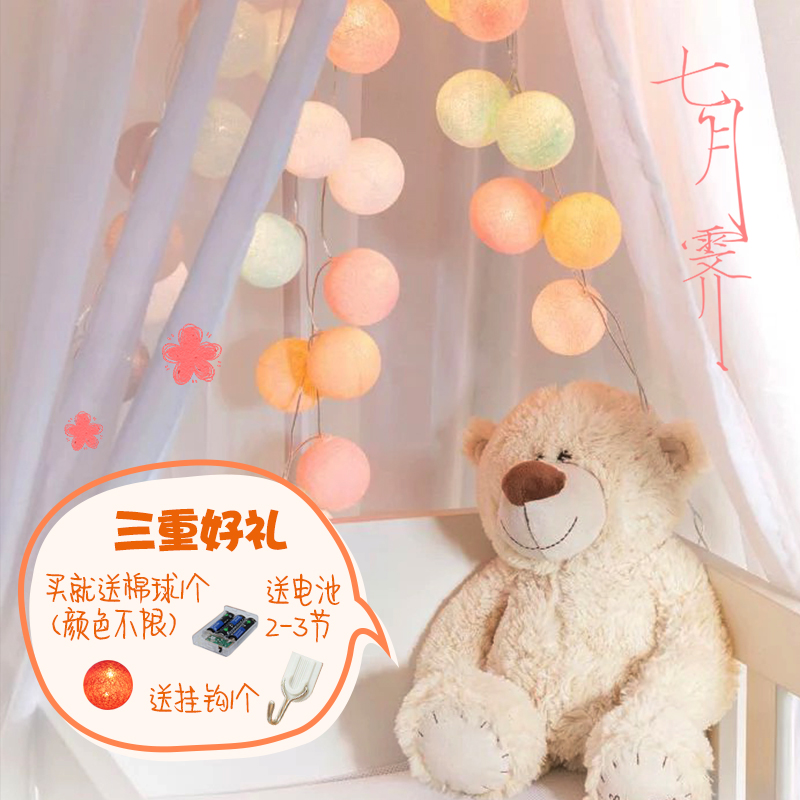 # Surprise to children #Macaron Room decorated cotton line romantic LED Light String Thai hand cotton ball lamp