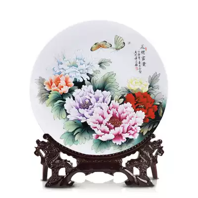 Jingdezhen ceramics handmade decoration sitting plate hanging plate flowers blossom rich living room decoration desktop ornaments