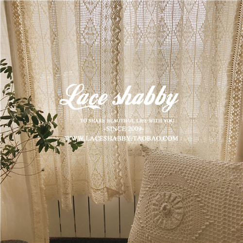 Nordic Wind INS Retro Qingwei color hollow shading lace cloth floor window floor window curtain finished product
