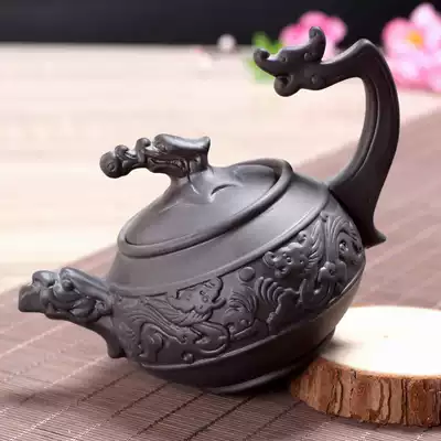 Purple clay pot large household kung fu Yixing purple mud Double Dragon pot tea maker Zhu mud pure handmade tea set tea ceremony set