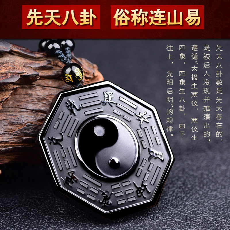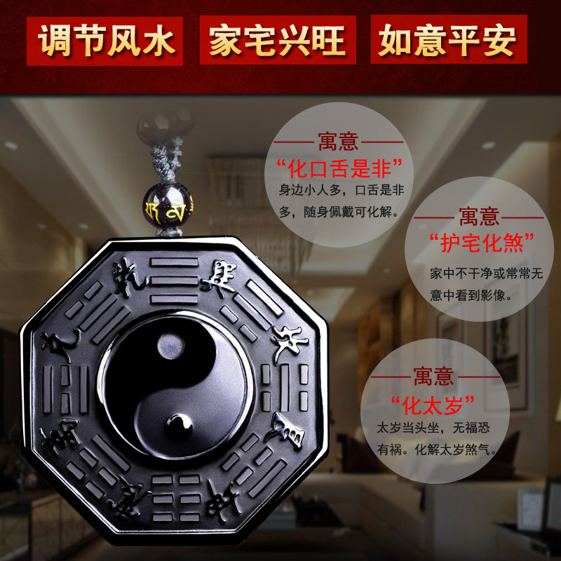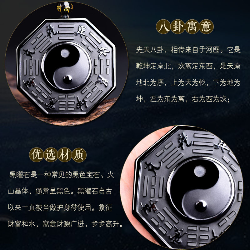 Gift Obsidian Yin and Yang five elements Bagua rune Yin and Yang fish Tai Chi Bagua pendant Amulet Bagua blessing for men and women
