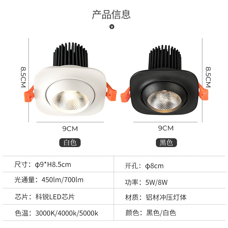Plotty embedded spot light led ceiling light Square concealed cob bullseye light Living room without main light Cree cree