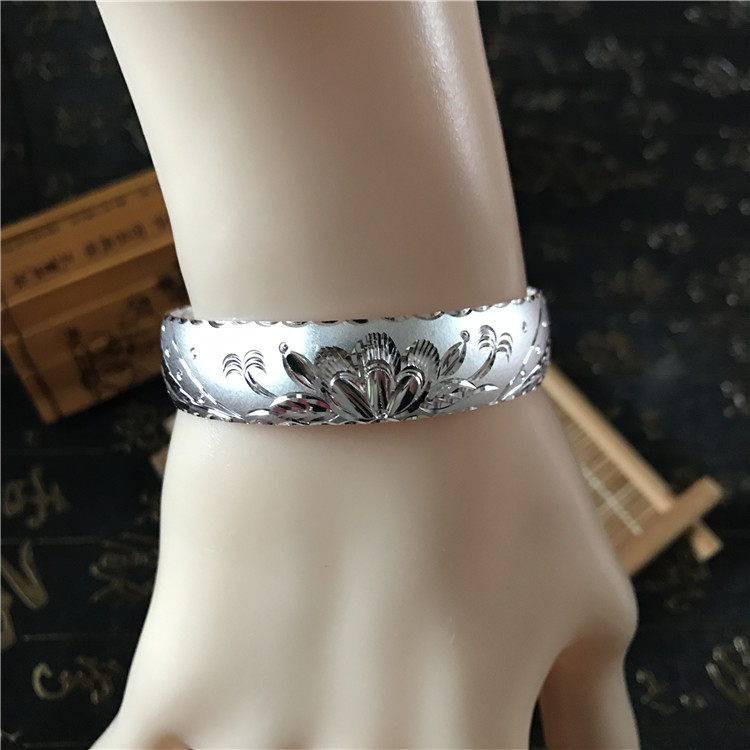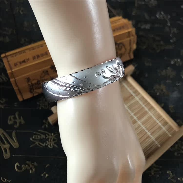Sterling Silver Pure Silver 9999 Open Concubine Matte Van Bracelet in Silver