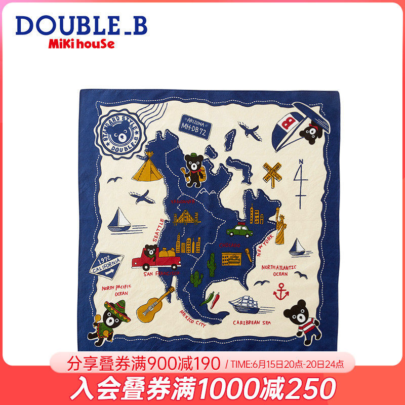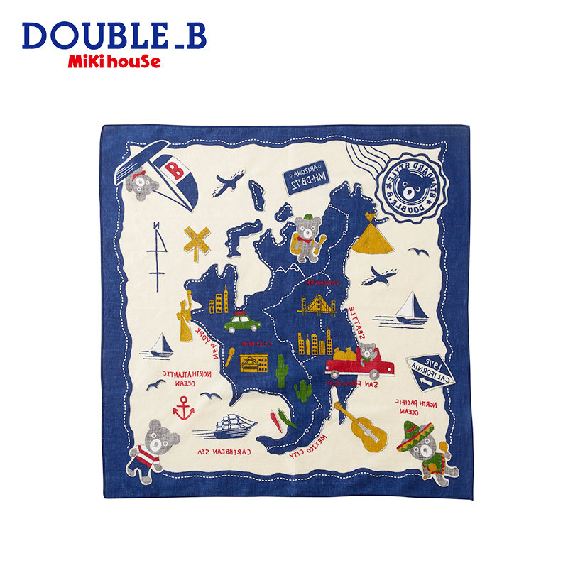 Children's pure cotton square towel Mikihouse Double_B Little black bear male and female Japanese new goods set goods