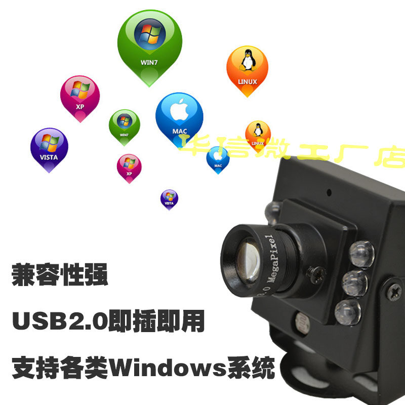 HD infrared 850 narrow band night vision with lights Android distortion-free wide angle USB1080P industrial computer lens