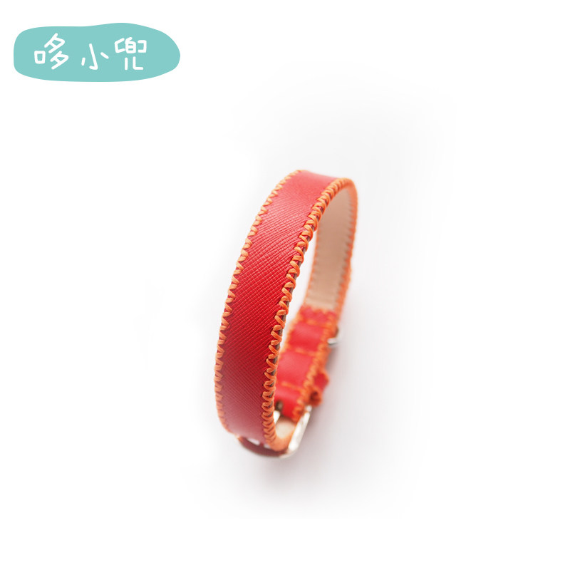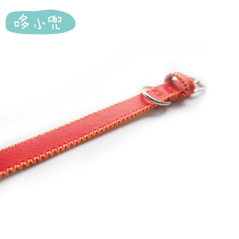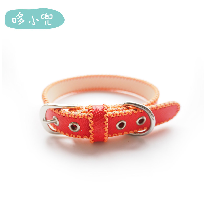 Dougou hand - made cow - leather collar cross orange line pet cat dog custom bell collar