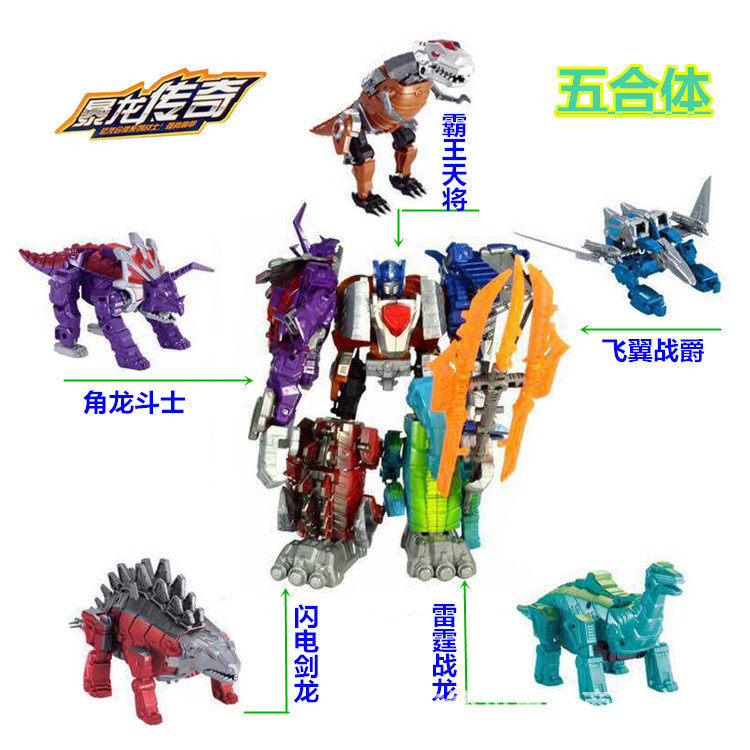 Deformation toy King Kong five-in-one assembled dinosaur robot model Tyrannosaurus rex steel cable 5-in-one suit