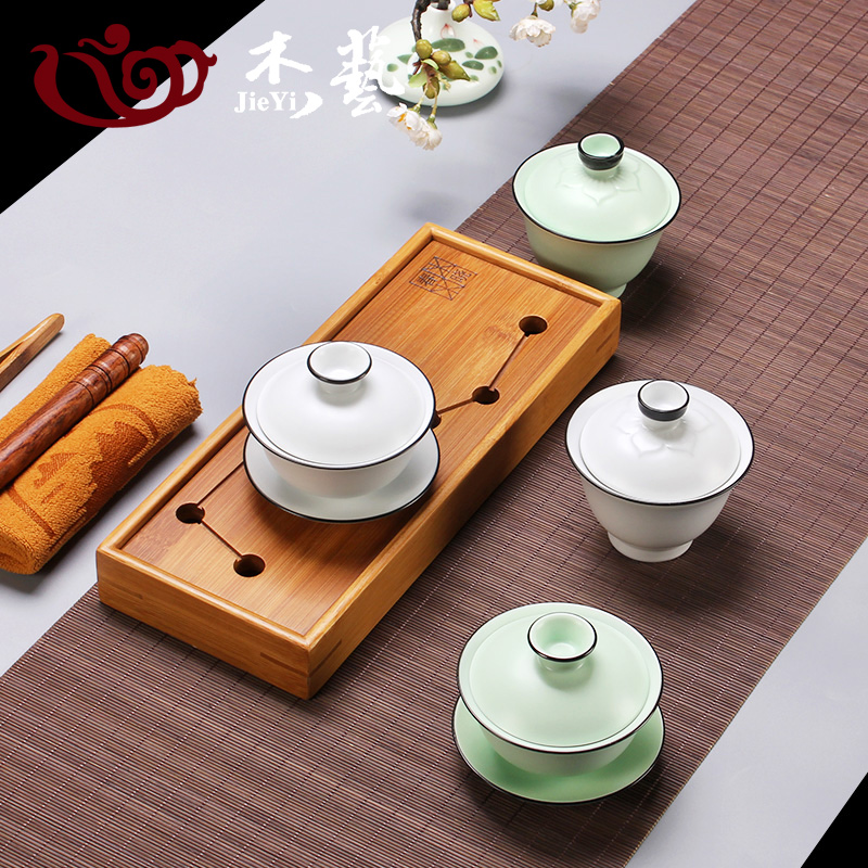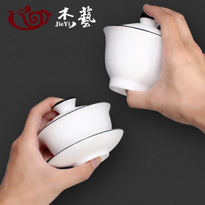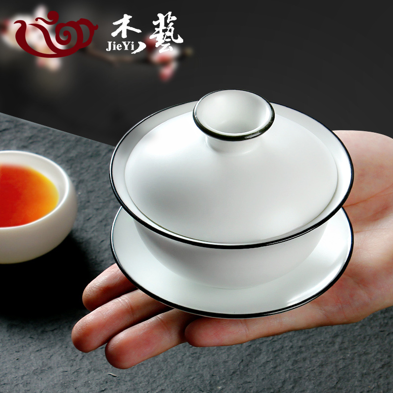Gaiwan teacup ceramic teacup large three-talented gaiwan set kung fu tea set hand grab pot white porcelain tea brewing tea maker
