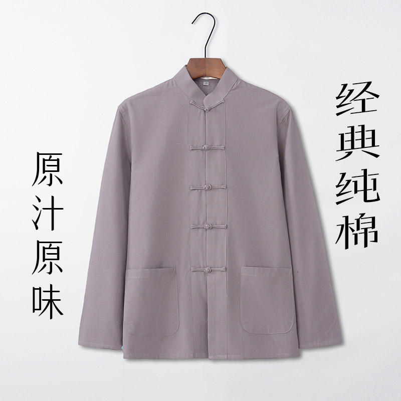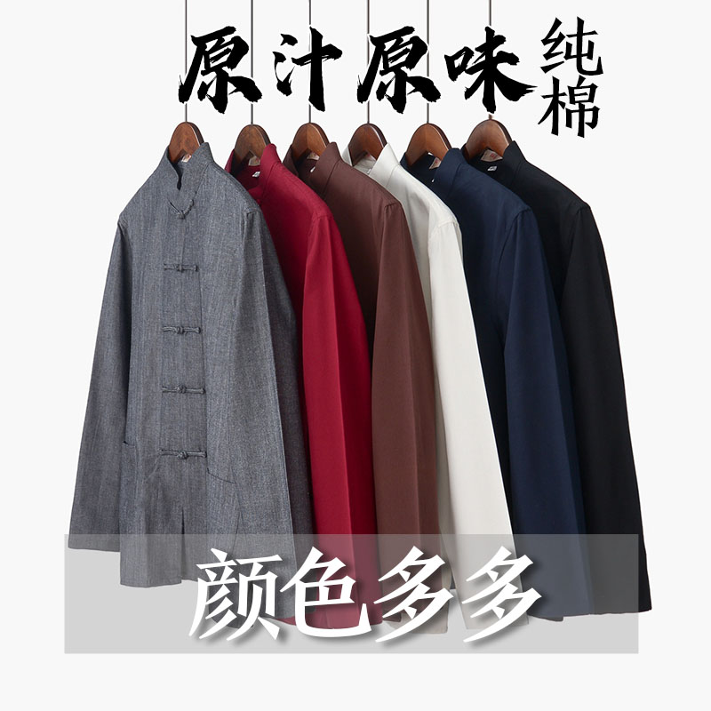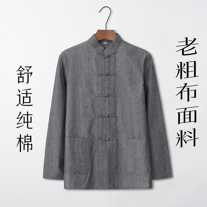 Chinese style men's clothing autumn pure cotton coarse cloth tang dress young Chinese style long sleeve Chinese clothing vintage style loose clothes