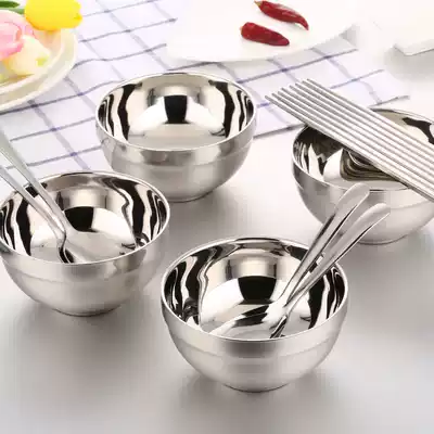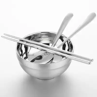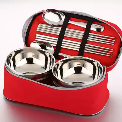 Solid melting stainless steel bowl student portable tableware set 4 bowls 4 bowls 4 chopsticks spoon chopsticks Rice Bowl picnic bag Outdoor