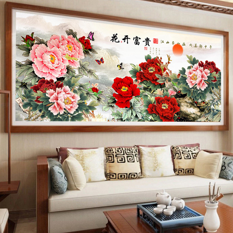 Mona Lisa Cross Embroidered Flowers Open Rich Peony Flowers 2021 New Line Embroidered Living Room Full Embroidered Yourself Embroidered