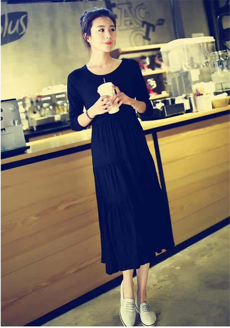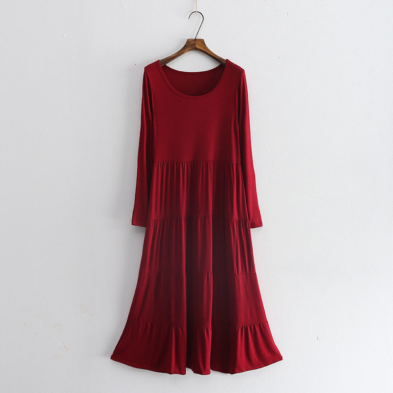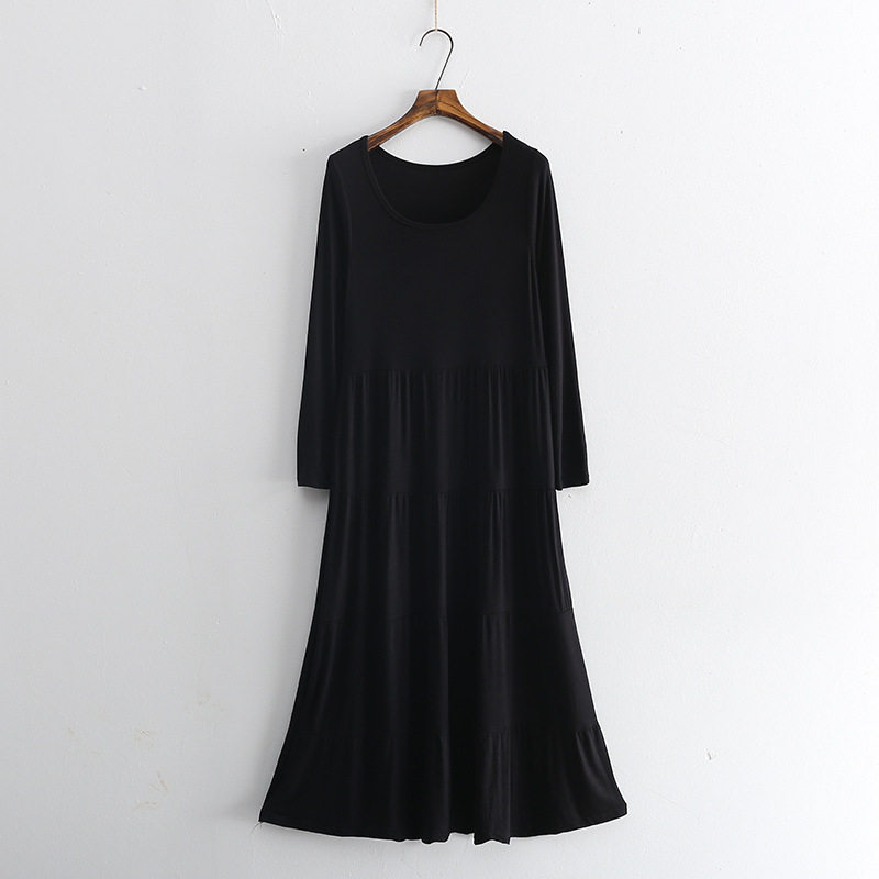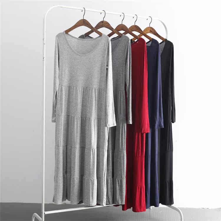 Korean version large size loose long sleeves round neck modal cotton long version cake dress outer wear home nightdress women spring and autumn