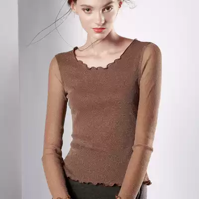 Autumn and winter New Latin dance modern social dance shirt female bright silk mesh wooden ear long sleeve dance practice clothing