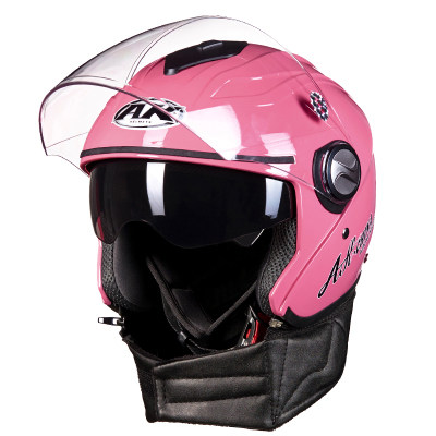 AK summer with collar electric car helmet half helmet women's double lens electric car head gray helmet four seasons universal