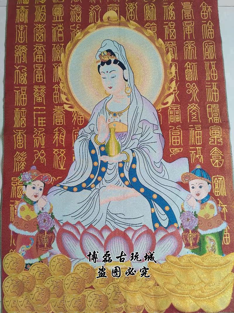 Ancient Play of Tang Card View of the BodhisattBodhisattBodhisattva portrait Guanyin Guanyin Chinese Calligraphy And Painting Brocade Embroidery Buddha Hall Hung Painting
