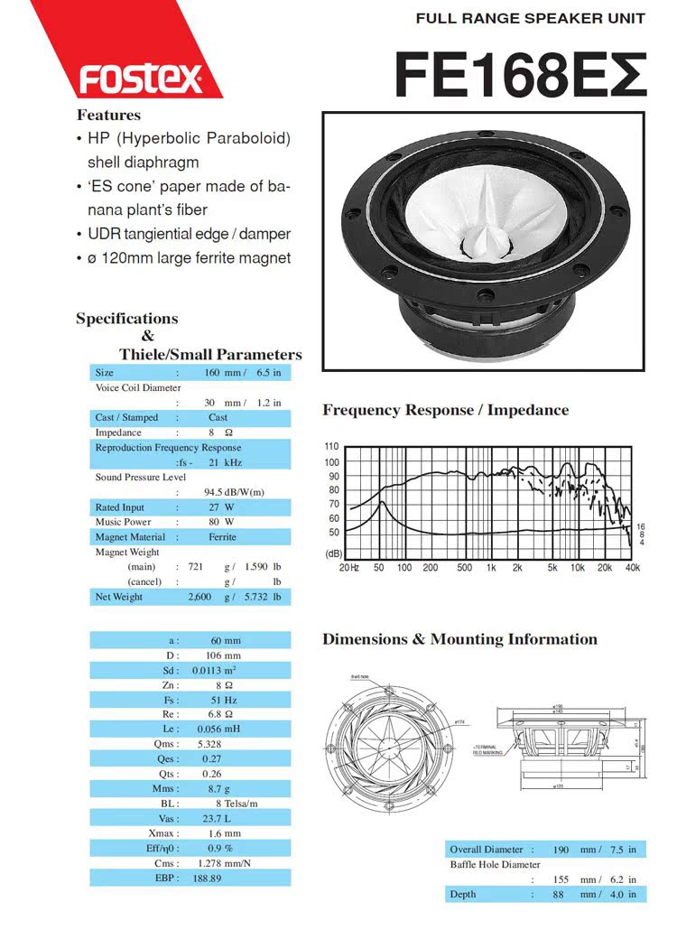 Fosstex FE168EZ 6 inch 8 Europe High efficiency Full-frequency loudspeaker unit Four-inch HiFi speaker