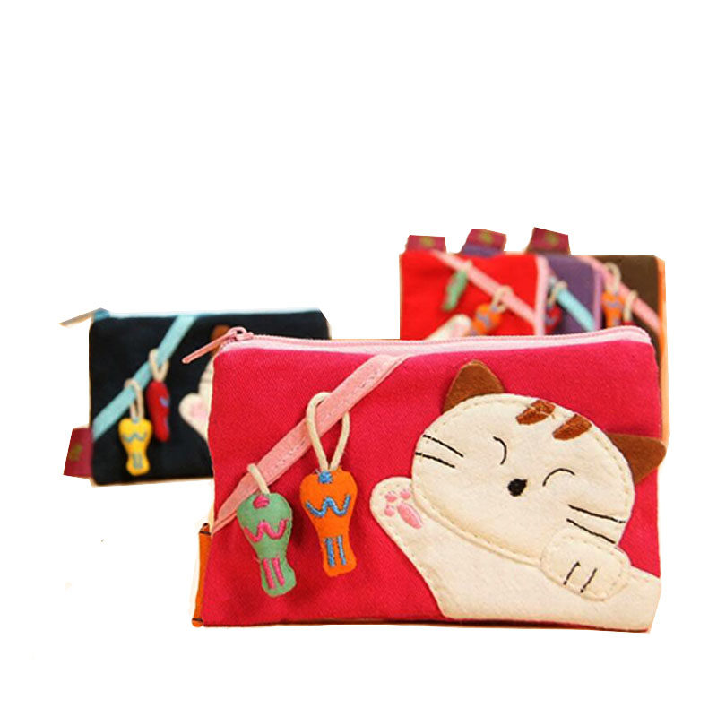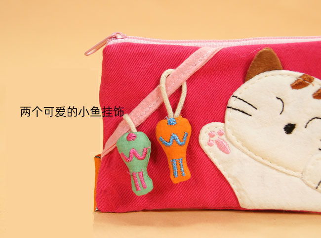 New QQ cat Japanese and Korean fabric small hanging fish cat two-layer coin purse cute ladies cotton zipper pocket bag