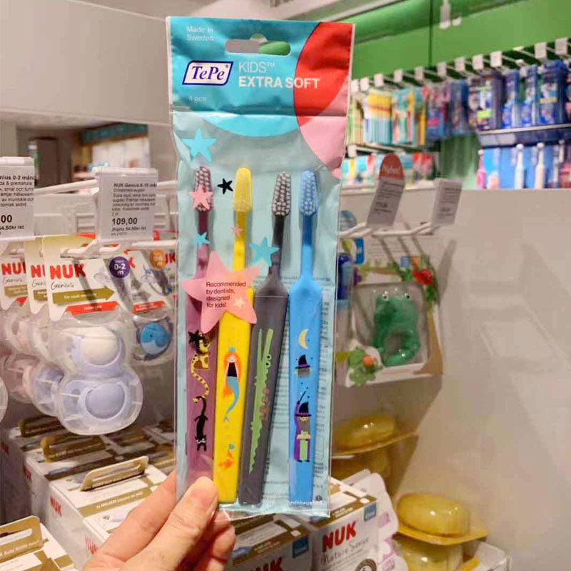 Swedish original TePe children's ultra-soft bristle toothbrush 4 packs baby tooth protection baby soft bristle toothbrush