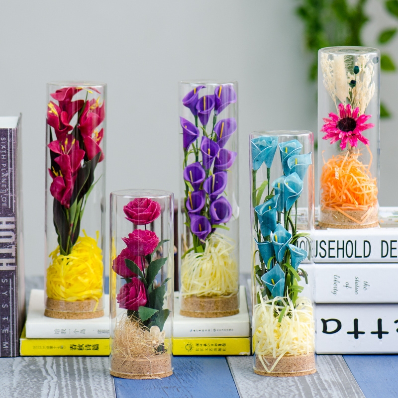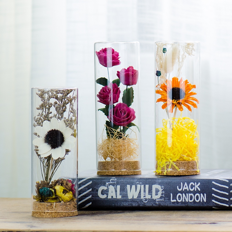 Modern minimal glass cover immortal flower fittings Living room fresh home decoration simulation flower blossom flower